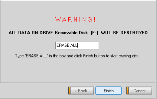 - Type ERASE ALL and select Finish.