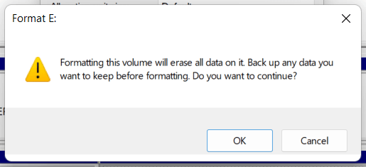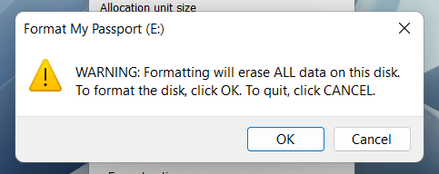 - Select Start > OK. You should be done in seconds if you choose the Quick Format option.
