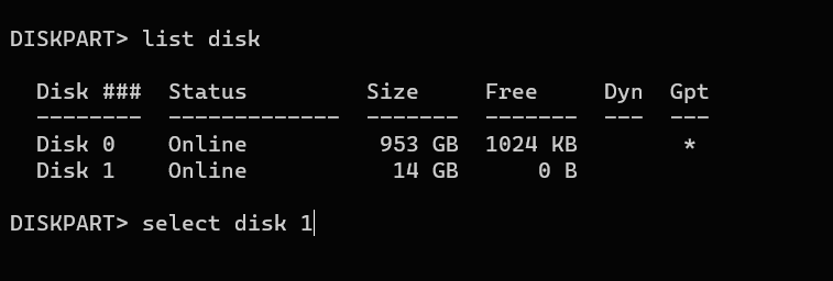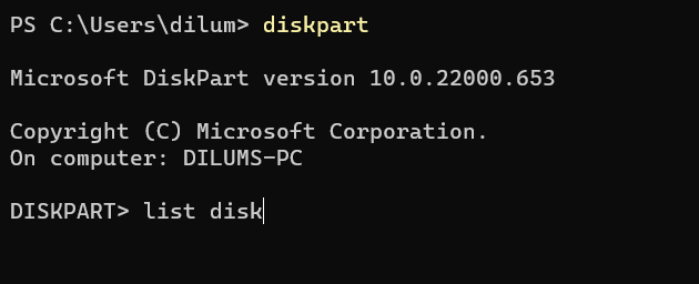 - Run the list disk command to load a list of drives on your computer.