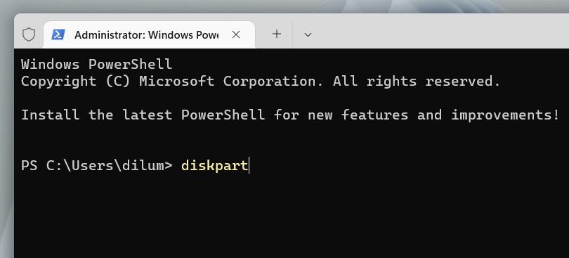 - Run the diskpart command to load the DiskPart command-line tool.