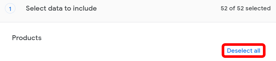 - (Alternatively, you can navigate directly to https://takeout.google.com.) * If you only want to export Gmails and not any other kind of data from your Google account, click **Deselect all**. (You can export data from other Google services, too, if you want, but note that the exported archive file can get very large.)