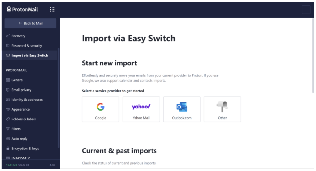 Do note that if you’ve already exported your Gmails using Google Takeout, you can use ProtonMail’s Import Export tool to import Gmails into your ProtonMail account.