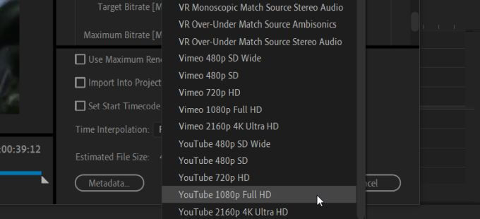 There are five presets you can use to export to YouTube. Depending on your project, you might want to adjust certain aspects to suit your needs. You’ll want to set the format to H.264, as this will provide you with the best quality video.