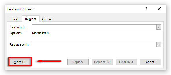 Note: You can also access the Find and Replace window with a keyboard shortcut. Press Ctrl + H on Windows and Control + H on macOS.