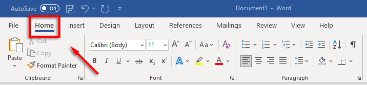 - * Make sure your Word document is open, then select the Home tab.