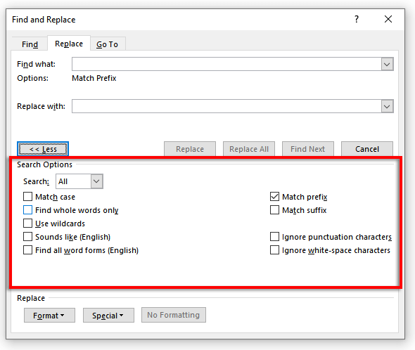 - Click Replace or Replace All.