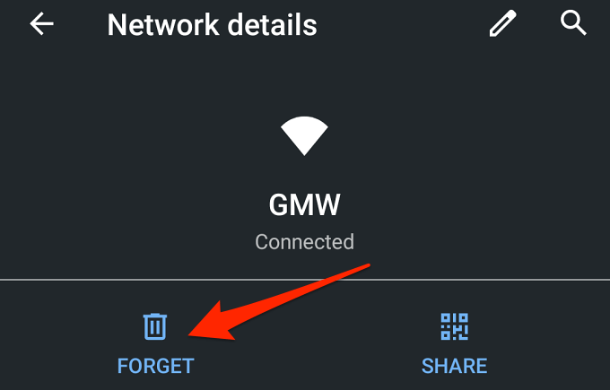 Alternatively, tap the gear icon next to the network and tap the Forget icon.