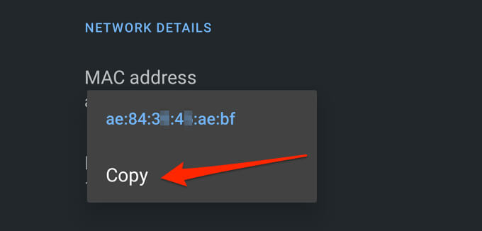 Quick Tip: You can easily copy your device’s MAC address by long-pressing the MAC address and tapping Copy.