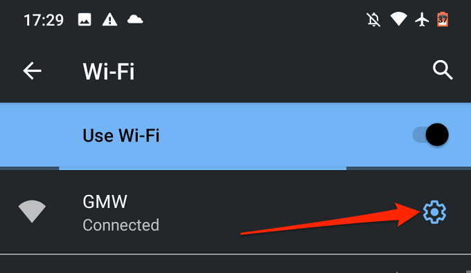 - Select the active Wi-Fi network or tap the gear icon next to the network’s name.