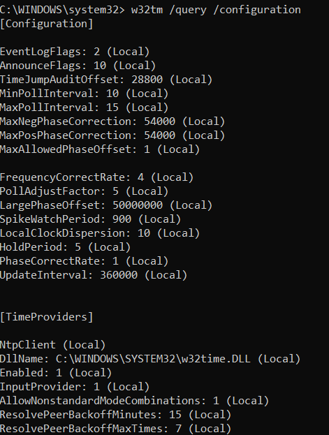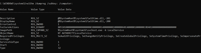 To get information about a registry key, you can also go to the Command Prompt. There, enter the following, along with w32tm /dumpreg