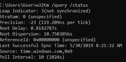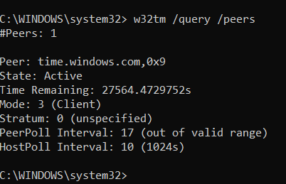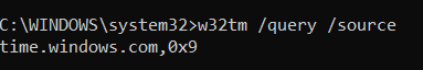 Now that the Windows Time Service is registered and running, you can get information from it. You can do this by typing the following: **w32tm /query **and match it with the following parameters.