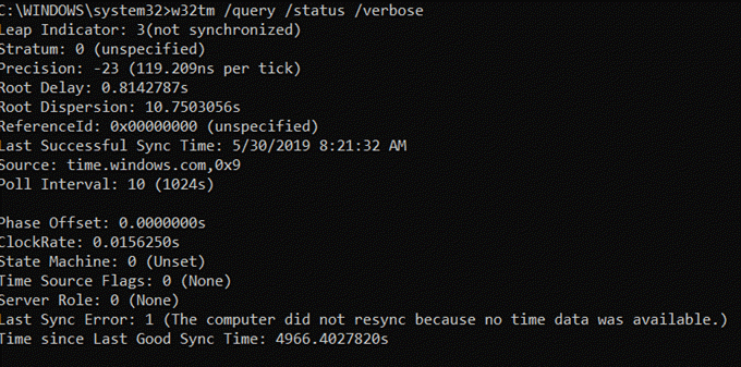 You can also use the **Command Prompt **to resynchronize the clock the soonest time possible.