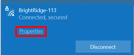 - Under the Wi-Fi network connection you’re currently connected to, select Properties.