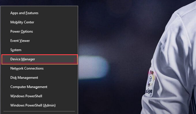 - Right-click the **Start **button and select Device Manager.