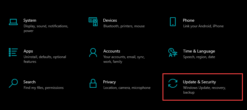 Select Update & Security.