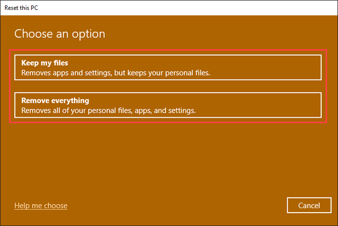 Follow that by selecting Keep my files to reset your PC while retaining personal files, or Remove everything to revert everything to factory defaults. For more details, learn how resetting Windows 10 works.