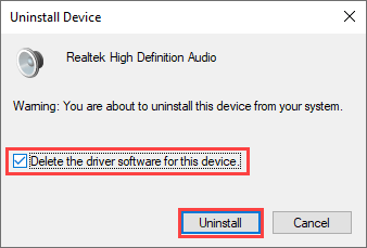 - Check the box next to **Delete the driver software for this device **and select Uninstall. Follow that by exiting the Device Manager.