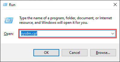 Type **sysdm.cpl **and select OK.