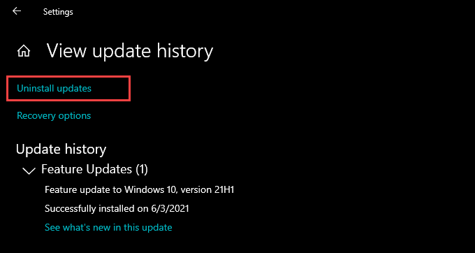 Go to **Update & Security **> **Windows Updates **> **View update history **> Uninstall updates.