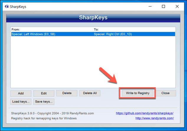 - Once you’ve re-mapped your Windows key, press Write to Registry to save the changes. You may need to restart your device afterwards.