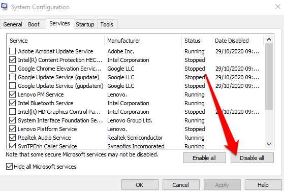 - Select **Disable all**.