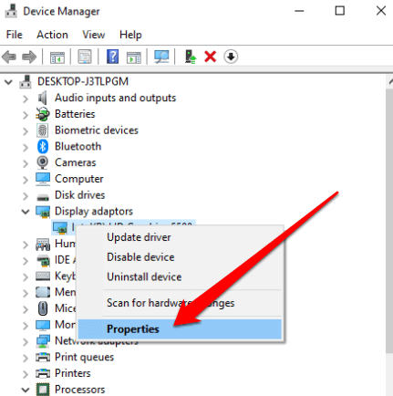 - To do this, right-click Start > Device Manager. In the Device Manager window, right-click the device whose driver you want to roll back and select Properties.
