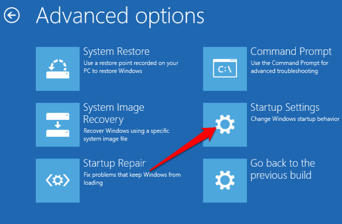 - Next, select **Advanced options > Startup Settings** and select **Restart**.