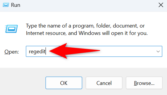 - Type the following command in the box and press Enter: regedit