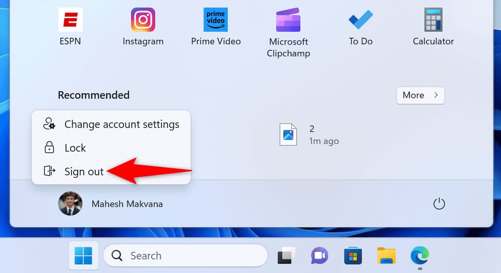 - Choose Sign out to log out of your current account.