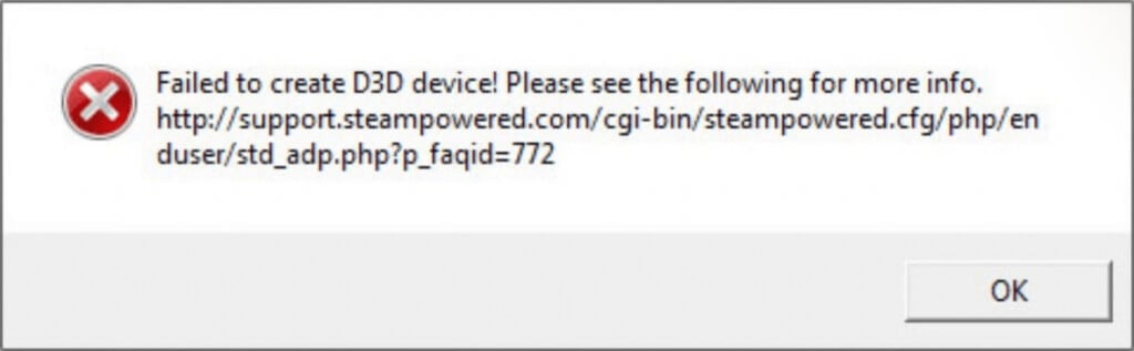 The “Failed to create D3D device” error stems from the inability of the video card to interface with DirectX. The reasons are various. The lack of drivers, suspended graphics services, a conflicting application, or even extremely high graphical settings of a game.