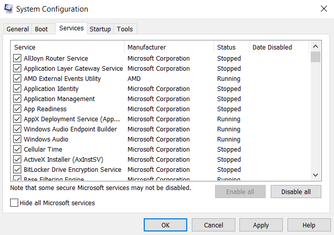 - Once you find the graphics services of your device, make sure that their checkbox is enabled. If you have trouble locating the right service, you can just **Enable All **to startup every service. Click on **OK** to save the changes.