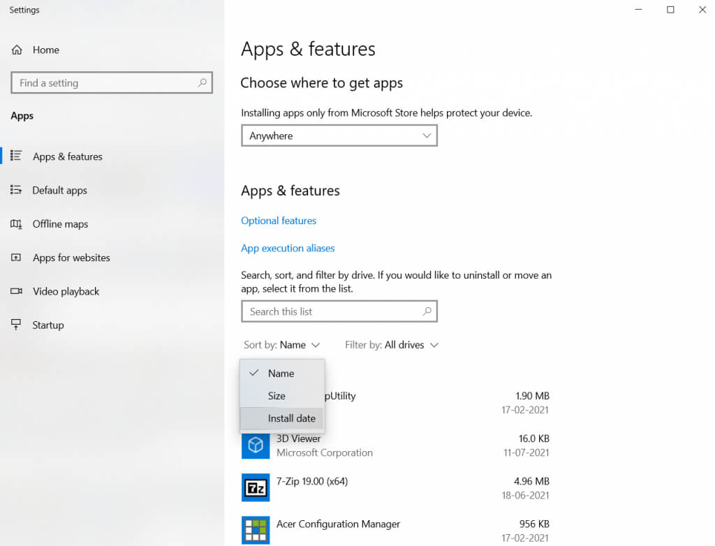 - By default, the apps are sorted by their names in alphabetical order. Change it to **Install date **to bring the recent additions to the top.