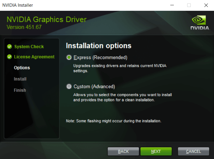 - The setup will install the drivers over the current drivers for you. The display might flash during the process.