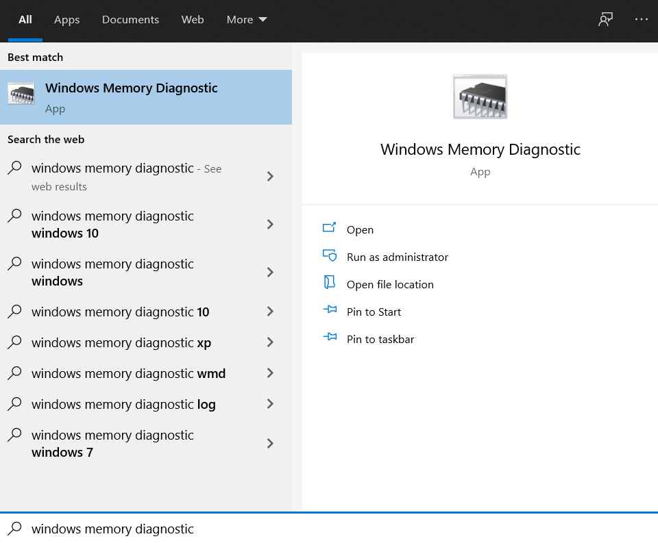 - Type Windows Memory Diagnostic in the Windows search box.
