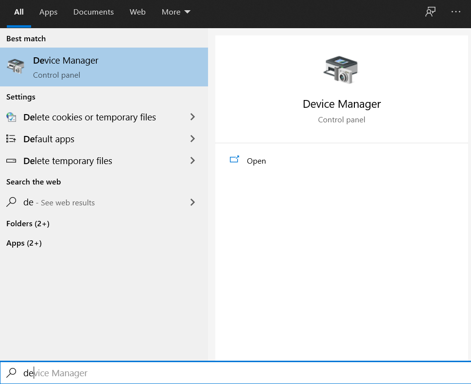- Go to the Device Manager. You’ll find it inside the Control Panel or by simply typing “device manager” in the Windows search box.