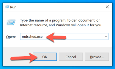 - In the **Run** box, type **mdsched.exe **and select **OK**.