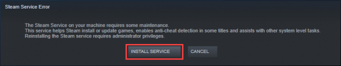 The “Steam Service Error” message includes an Install Service option that you can use to re-install the Steam Client Service. If you haven’t already, just select it and see if that helps.
