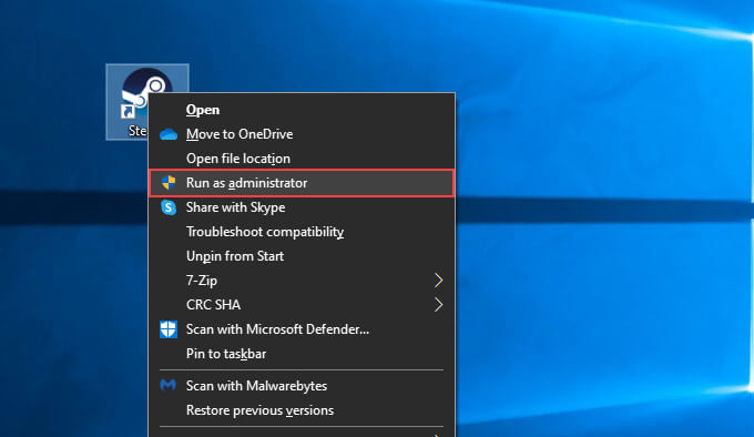 If you have a **Steam **icon on your desktop, simply right-click it and select Run as administrator. If you use the Start menu to open apps, locate and right-click Steam, point to More, and select Run as administrator.