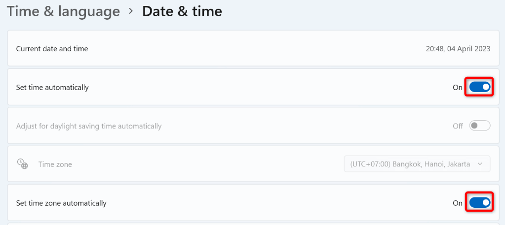 - Turn on both Set time automatically and Set time zone automatically options on the right.