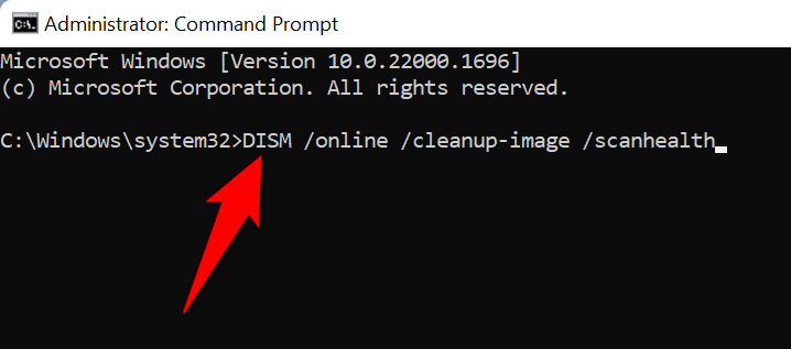 - Choose Yes in the User Account Control prompt. * Type the following command on the CMD window and press Enter: DISM /online /cleanup-image /scanhealth