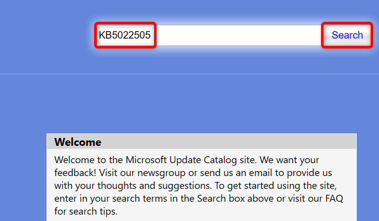 - Open a web browser on your PC and launch the Microsoft Update Catalog site.