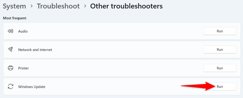 - Choose Run next to Windows Update.