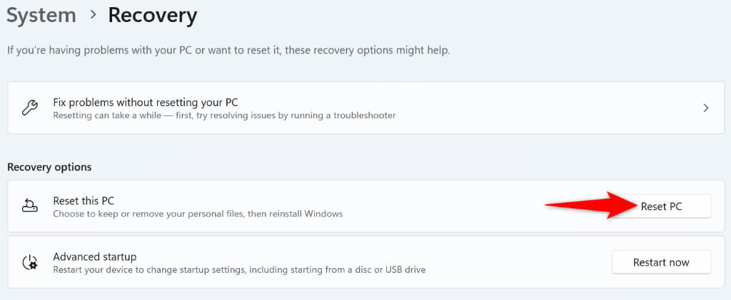 - Select Reset PC next to Reset this PC.