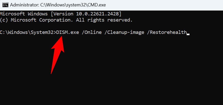 - Type the following command on the open window and press Enter. This command will download the files needed to repair the damaged files. DISM.exe /Online /Cleanup-image /Restorehealth