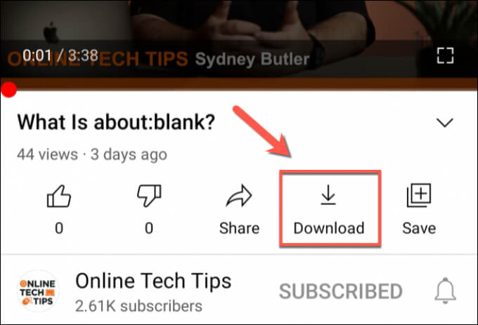 - To start, open the YouTube app and play your video, then select the Download button underneath it.