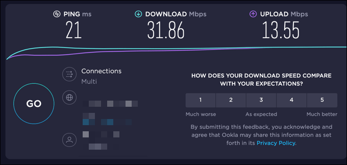 If you’re unsure whether your connection is at fault, you can use a service like Speedtest to check your connection latency and download and upload speeds. A slow connection or high ping rate could stop you streaming and may require additional technical support from your internet service provider to resolve.