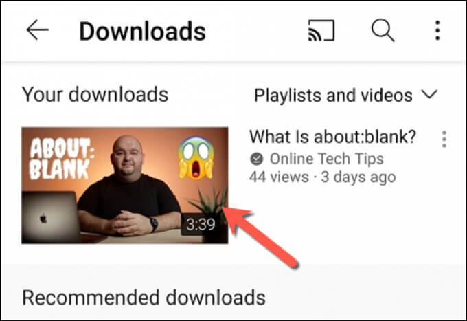 - A list of your downloaded videos will appear in the **Downloads** menu. Select the video thumbnail to begin playing the video as a file.