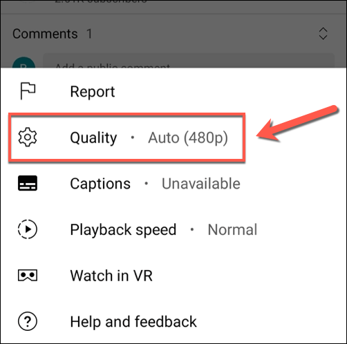 - If you’re using the YouTube mobile app on Android, iPhone, or iPad devices, you can change the video quality by selecting the **three-dots menu icon** in the top-right corner of the playing video. From the menu, select **Quality**.