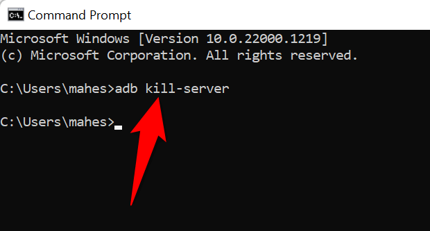 - Run the following command in CMD to disable the ADB server: adb kill-server