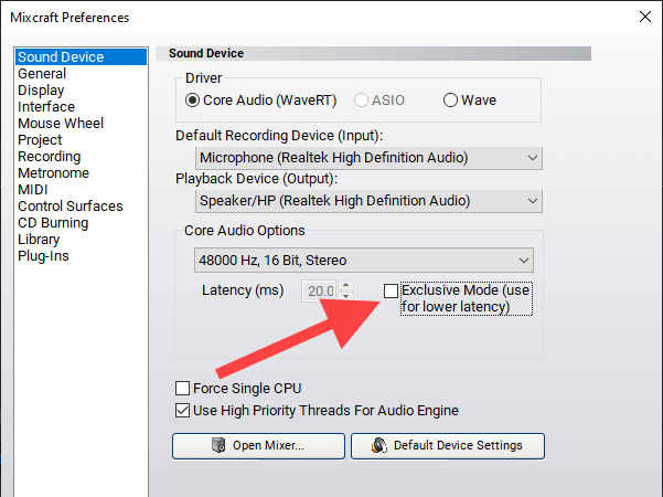 That can result in latency issues while using the program, so remember to enable Exclusive Mode (or its equivalent) when needed.
